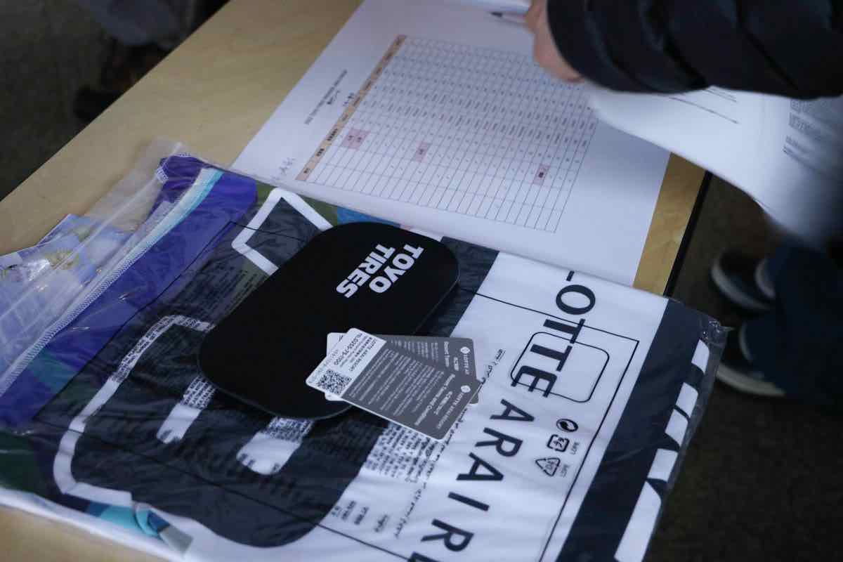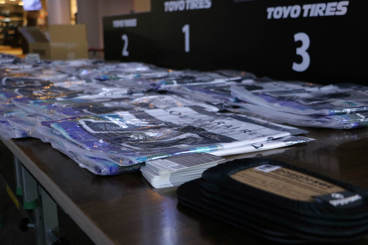 本来は選手や関係者が集まり大会前のコミュニケーションの場となりますが、昨今の新型コロナウィルス感染症対策として、残念ながら必要最低限のコンタクトでビブ配布を完了します。