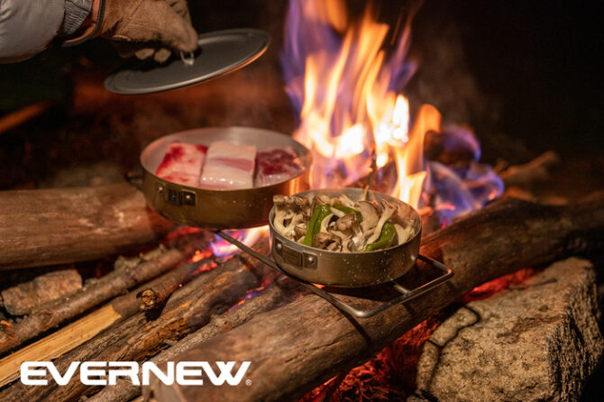 野外調理用として、重さと耐久性、蓄熱性のバランスを考慮し厚みは2mmとし、ハンドルはクラッシックな方法の脱着式を採用。また、均一な厚みを出すべく、製法は熟練職人によるヘラ絞りにしました。