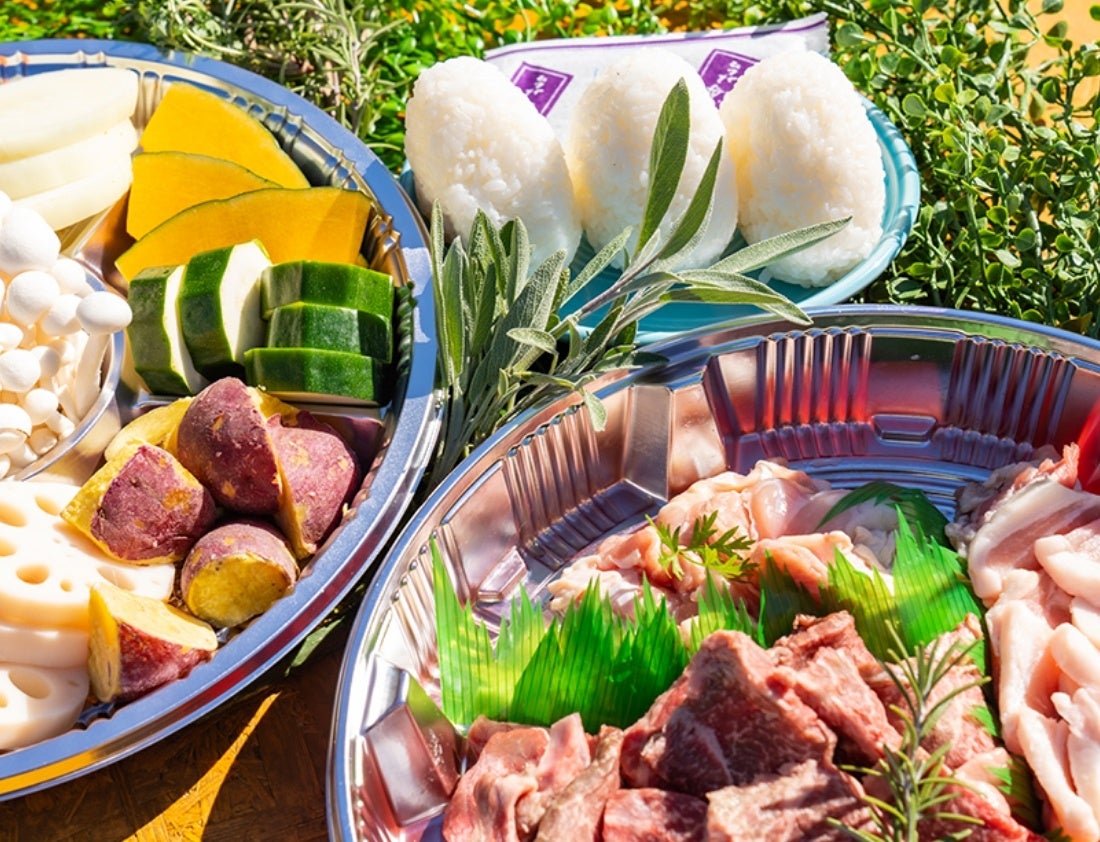 <お手軽なオリジナルBBQセットもご用意可能!自分で用意しなくても食材の事前予約が可能!>