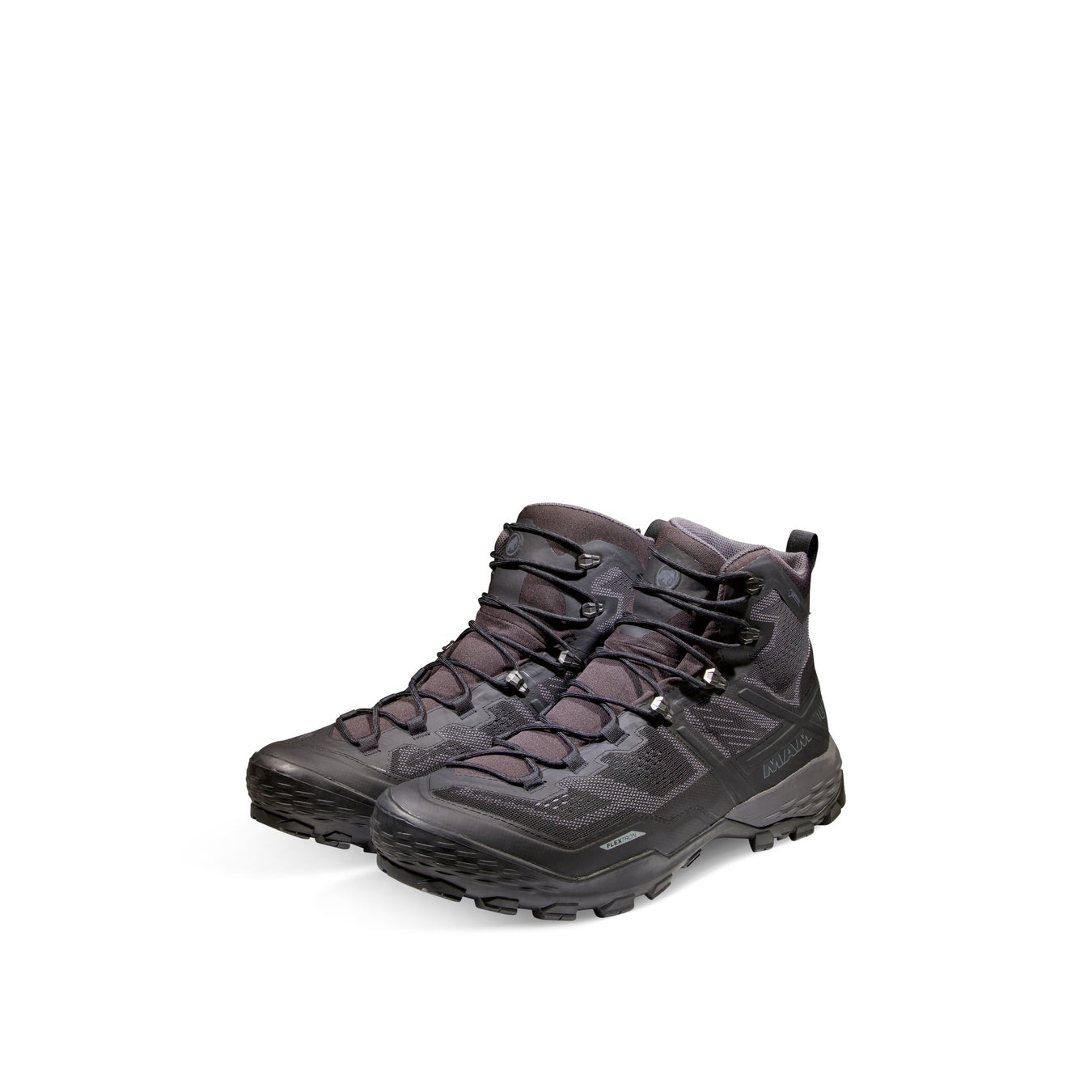ハイカット、ミッドカット、ローカットと幅広い展開をしている、ゴアテックスを使用している高機能シューズ。ハイカットのモデルでも545gと軽量でありながら、マムートの独自テクノロジー「フレクストロン」を搭載しており、不整地や長時間の移動でも足の疲労を軽減してくれます。ビブラム社製のアウターソールが信頼できるグリップ力を提供し、信頼できるGORE-TEXメンブレンが悪天候からあなたを守ります。