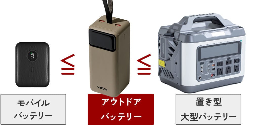 ポータブル電源よりも小さく、モバイルバッテリーよりも大きい丁度いいサイズのアウトドアバッテリー