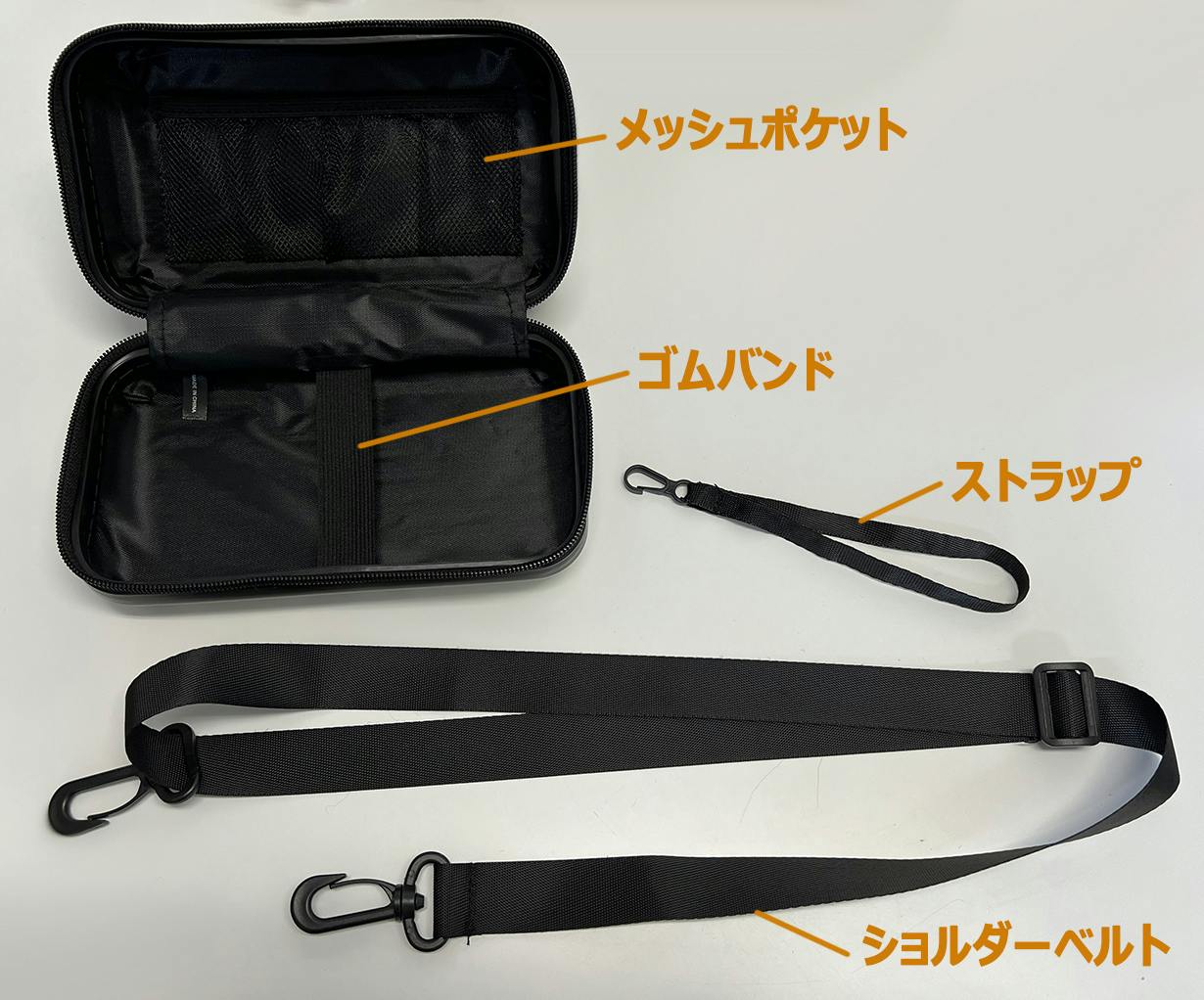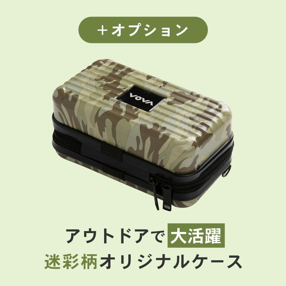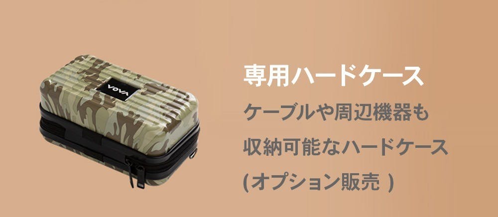 本体アースカラーの雰囲気にあう専用ケースを別リターンで用意。様々な機器の充電ケーブルや電源ケーブルを一緒に収納できます。機内持ち込みの際にも端子保護の観点からも便利です。