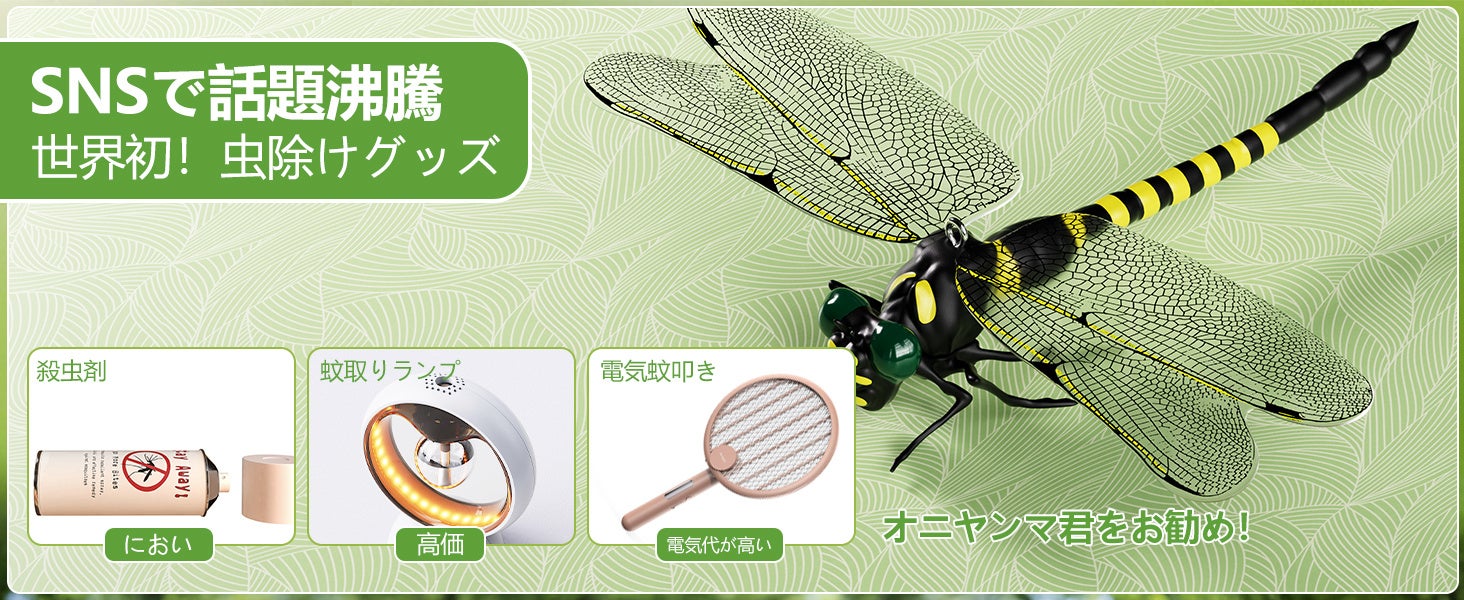 Aeemrnが最新の製品「虫除けトンボ君」を発表しました。この製品は化学薬品や電気を使わず、環境に優しい方法で効果的に虫を寄せ付けないことを目指しています。