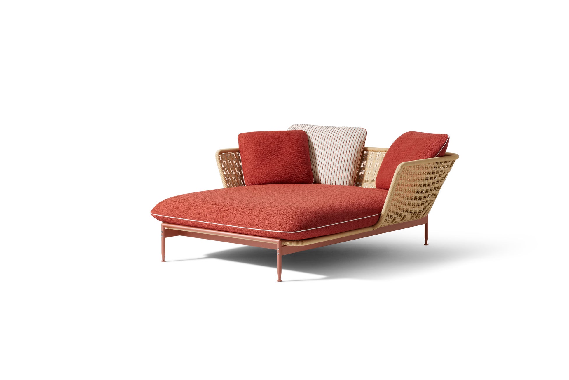 象徴的なベースフレームは、アイボリー、トープ、グリーン、テラコッタといった暖かみのある4色を採用。耐久性や耐摩耗性、耐熱性、耐紫外線性に優れ、メンテナンスも容易です。天然素材に似た手織りのファイバーで作られたシートシェルのバスケットは、職人技を感じさせる精巧な編み方で作られています。座面や背もたれに自由に配置できるクッションもあり、よりダイナミックで機能的な座り心地を提供します。