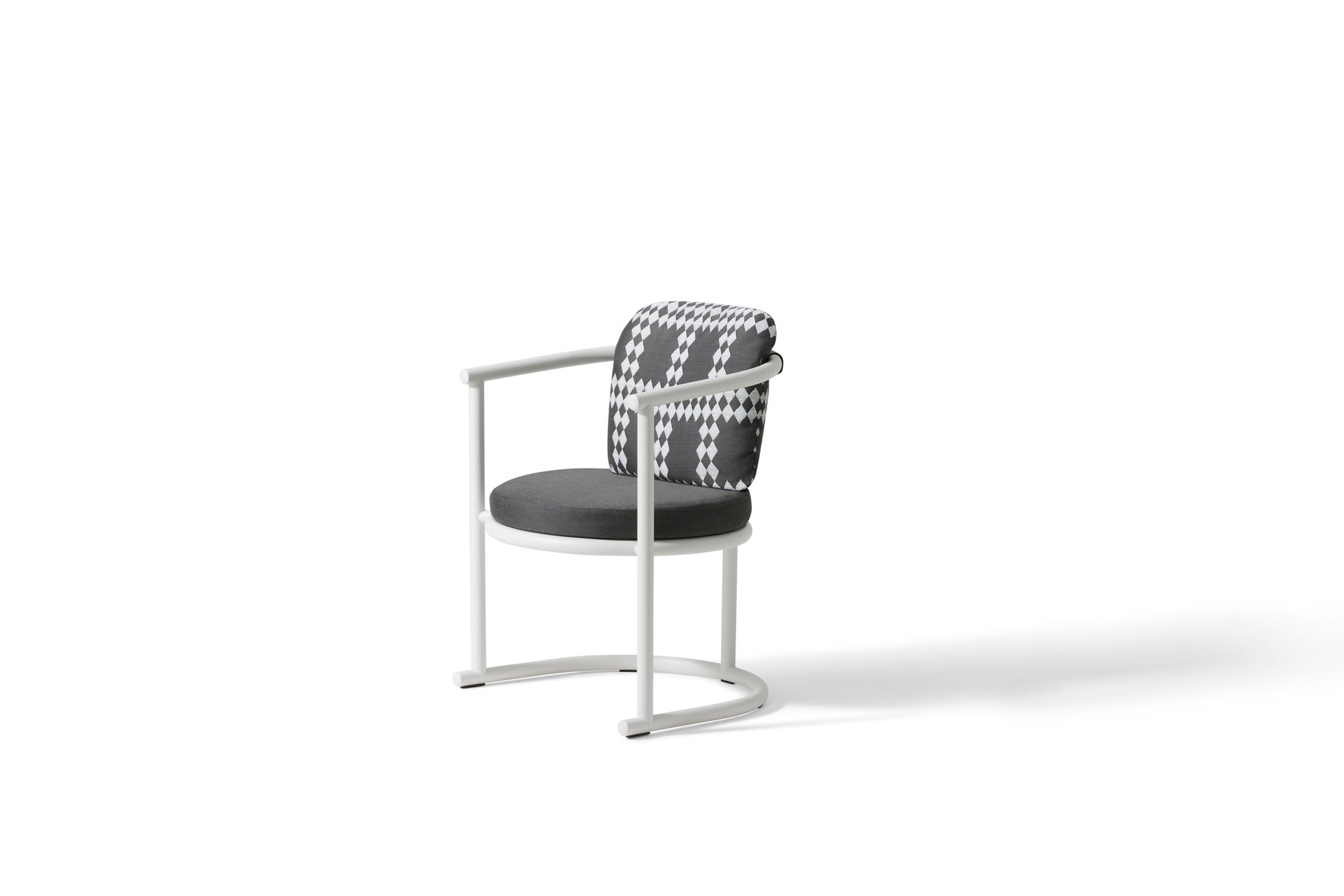 パトリシア・ウルキオラがデザインしたTRAMPOLINE(トランポリン)コレクションの遊び心と丸みを帯びた輪郭を引き継ぐ、ダイニングテーブルとチェアが登場。自然の中にある庭から都会のテラスまで、太陽の光と影の下を行き来するさまざまな屋外環境にシームレスに溶け込みます。
