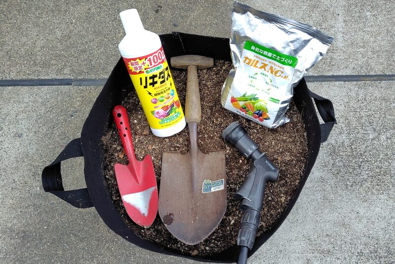水やり用のジョーロや、土を入れるためのスコップは基本アイテムです。より元気に育てたい場合は野菜用の肥料や堆肥もあるとよいでしょう。