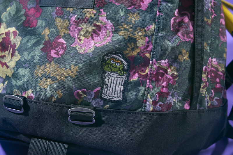 深いグリーンにフローラルプリントが映える人気柄「GARDEN TAPESTRY」に、限定のキャラクター刺繍をプラス。エルモとオスカーが花の中から顔をのぞかせるデザインは、自然の中で遊ぶふたりの様子を思わせる、温かみのある仕上がりです。
