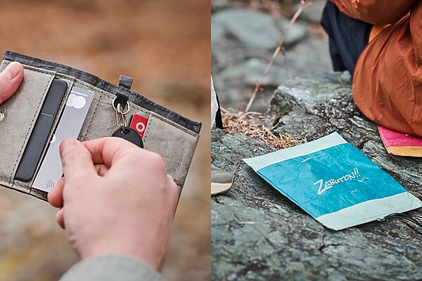 「山のおさいふ」は、“山では財布を開く機会は少ない”というアウトドアならではの視点から生まれました。必要最低限の機能に絞り込み、軽量でストレスのない使い心地を追求しています。