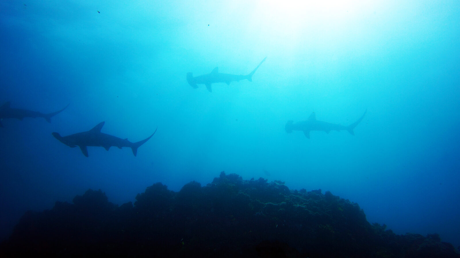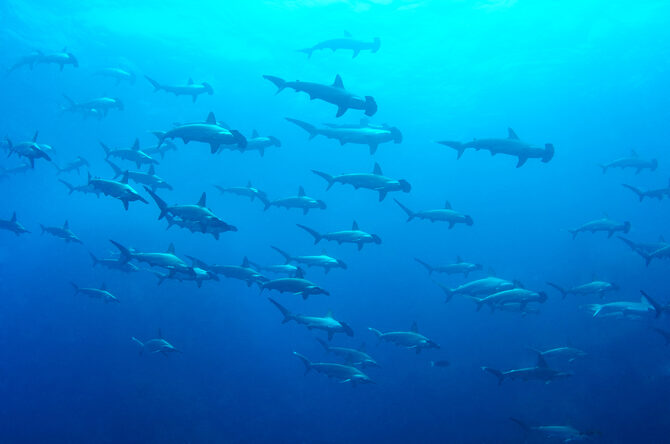 神子元島で遭遇できるハンマーヘッドシャークは、主にアカシュモクザメです。体長は4メートルほどで、絶滅危惧種に指定されています。