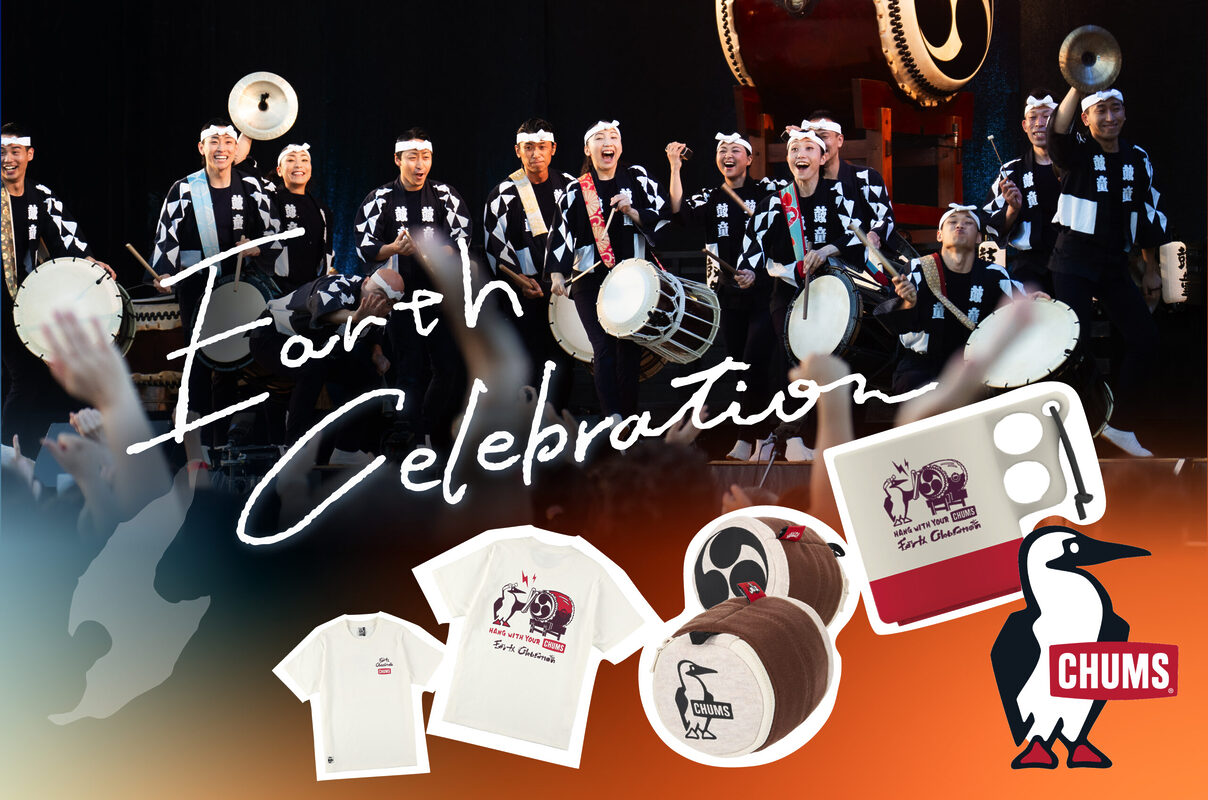 2025年のアース・セレブレーションでは、アウトドアファンに人気のブランド「CHUMS(チャムス)」とのコラボレーションが実現。CHUMSのマスコット「ブービーバード」が、鉢巻を巻いてバチを握る和太鼓スタイルで登場し、会場の熱気をさらに盛り上げます。