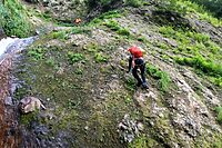 水線をダイレクトに突破するシャワークライミングは爽快!しかし、ロープ確保の方法を誤れば、事故に発展するリスクがあります。