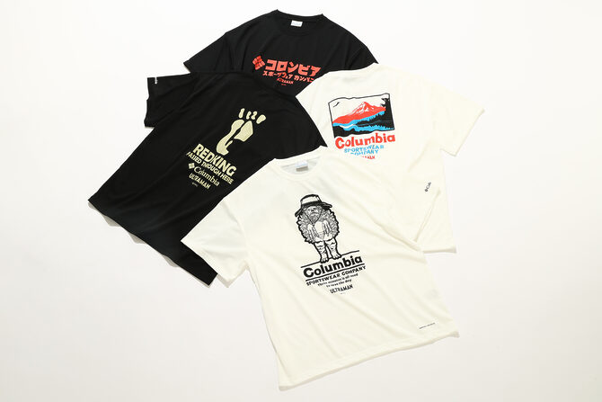 TシャツにはColumbia独自の吸湿速乾機能「OMNI-WICK(オムニウィック)」を搭載。街でもアウトドアでも快適に着用できる機能性と遊び心あふれるデザインが融合した、まさに今夏の注目コレクションです。