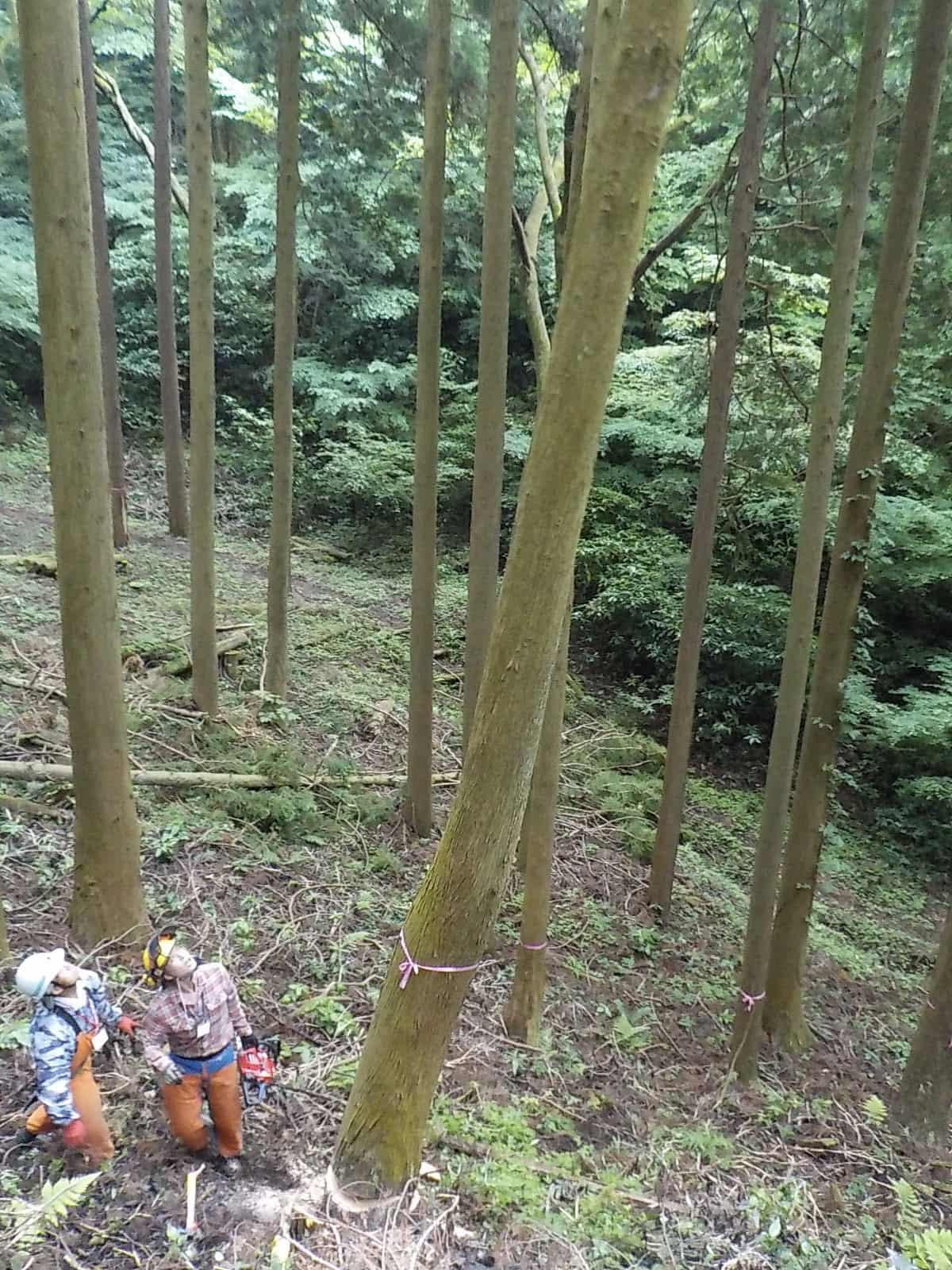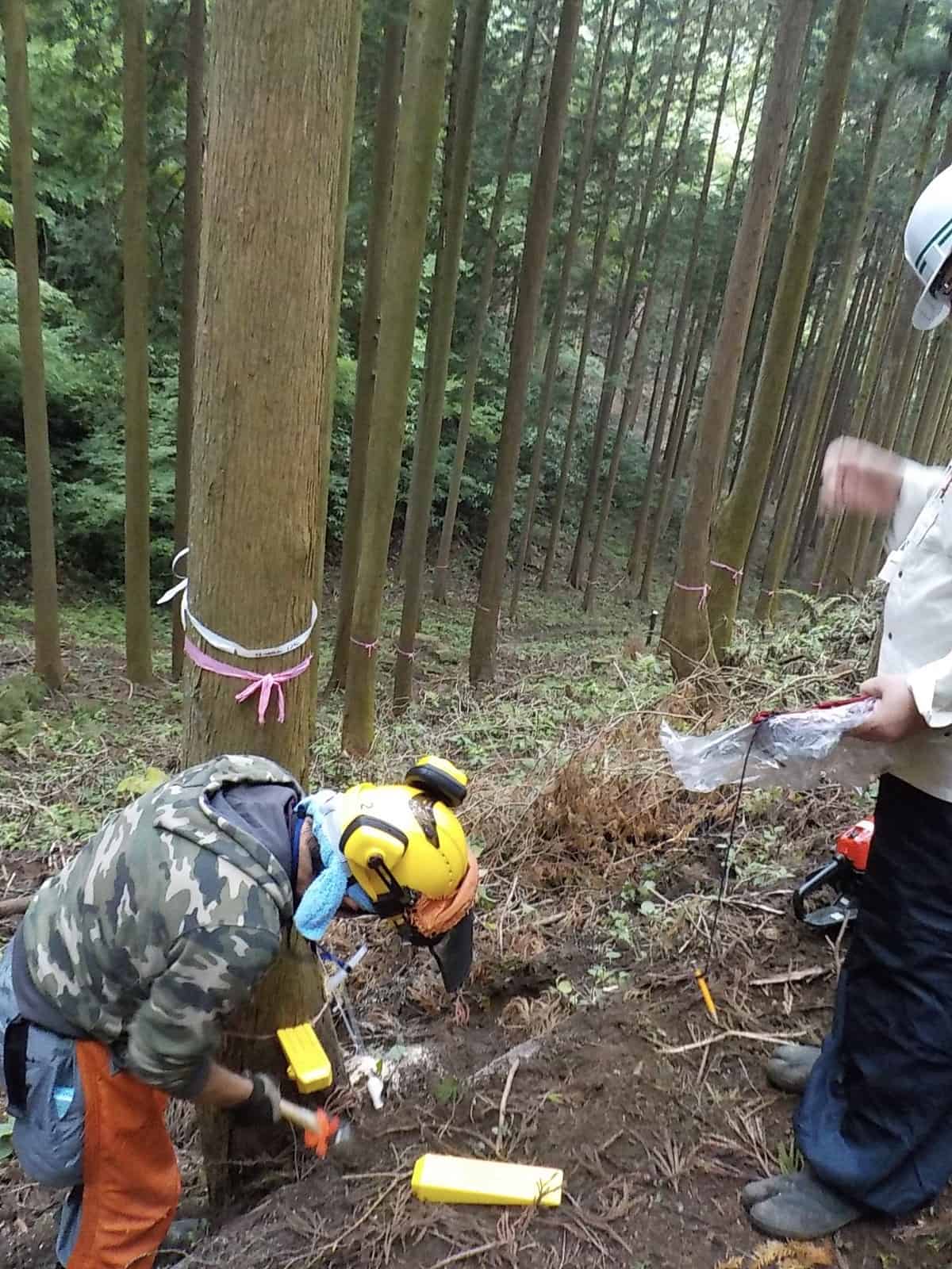 かながわ森林塾 演習林コースの一コマ。伐倒の実習。