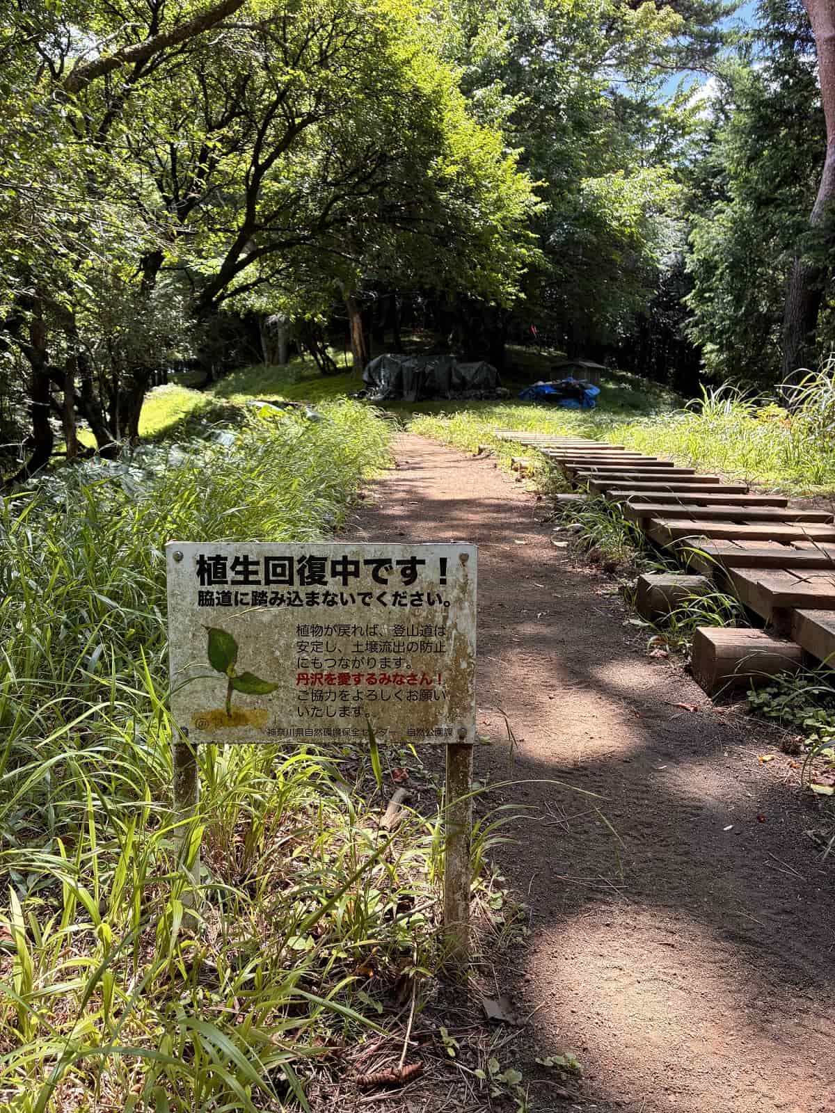 山を歩くときは、登山道を外れないのが基本です。登山道以外のところは危険なところもありますし、植生回復中のところもあります。植生の蘇生を見守りましょう。