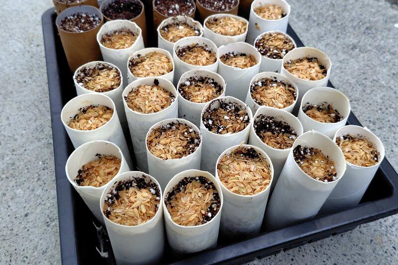 直根の野菜の管理に向いているのが「紙筒」です。画用紙を筒状にしてホッチキスで止め、中に土を入れて種をまきます。手作りが大変な場合は、トイレットペーパーやキッチンペーパーの芯を使うと手軽に作れますよ。