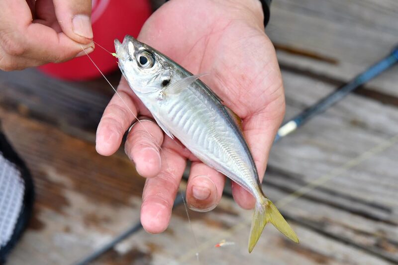 海釣りなら、堤防での「サビキ釣り」もおすすめです。カゴに入れたコマセ(撒き餌)で魚を集め、疑似餌を多数セットした仕掛け「サビキ」で小アジやイワシなどを狙います。