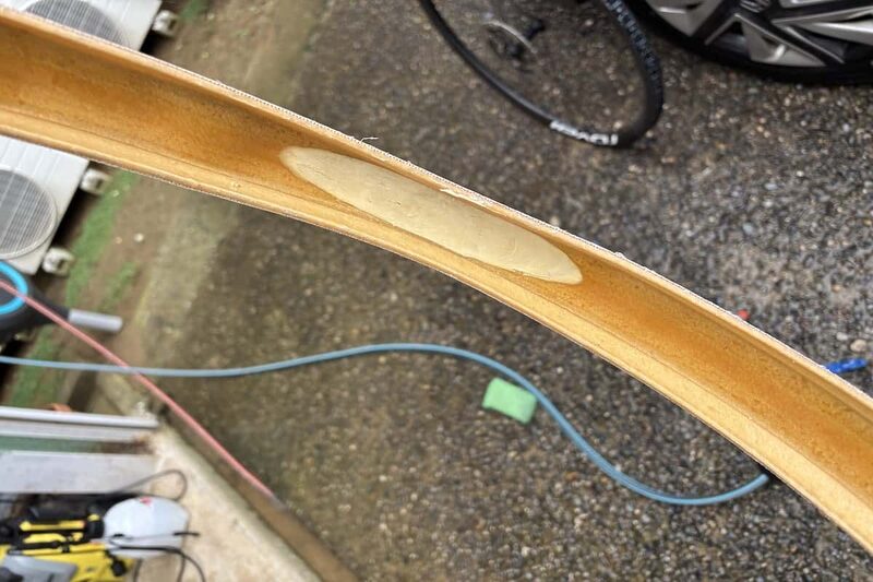 筆者の場合は、一度空気抜けをした際に内部のシーラントが酸素に触れ、さらにそのまま放置したために固着してしまいました。シーラントが固まるとバランスを崩したり、気密性を損ねたりするため危険です。