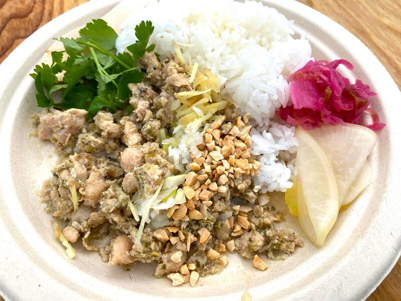 エスニック料理が好きな筆者は、この日もまずはドライグリーンカレーを。とはいえ、フェス飯は「いい匂いがしたほうへ」つい吸い寄せられるもの。気がつけば麻婆豆腐丼やピザにも手を伸ばしていました。お腹に余裕があれば、ラーメンにも辿りつきたかったです。