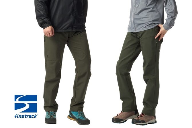 finetrackの設計思想を象徴するのが、人体の動きに寄り添った立体パターン。大きな足上げ動作でも突っ張り感を感じにくく、ストレッチ性のある生地と相まって、長時間の行動でもストレスがありません。クライミングや急登など、足の自由度が求められるシーンで力を発揮します。