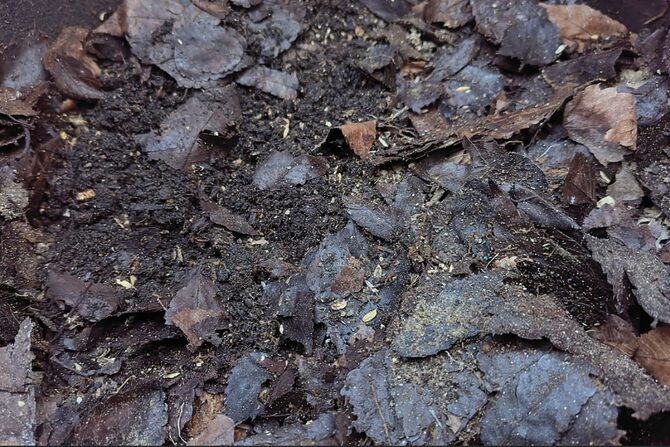 落ち葉は時間をかけて分解される炭素の多い素材。土に入れる場合は腐葉土にしてから混ぜ込むのが一般的ですが、筆者はプランターの底や畑の深いところ(40~50cm)に落ち葉を敷き詰め、上から土をかぶせる「落ち葉床」という方法を取り入れています。