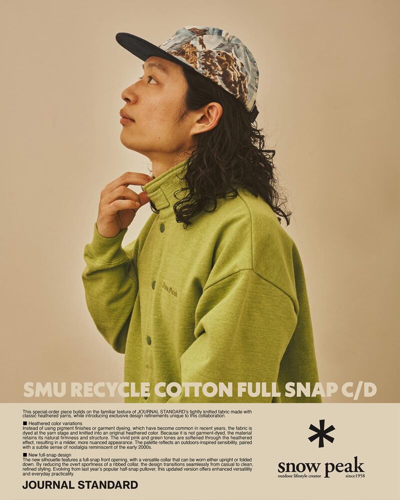 アウトドアギアの雄・SNOW PEAK(スノーピーク)とライフスタイルブランドJOURNAL STANDARD(ジャーナル スタンダード)がコラボレーションした別注アパレルが2026年1月より発売。過去の名作のエッセンスを受け継ぎつつ、現代のフィールドに合う機能性とデザイン性を両立したアイテムがそろいます。環境に配慮した素材使いにも注目です。