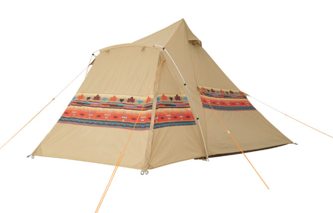 - Tepee型テントに前室をプラスした ナバホ柄のワンポールテント。