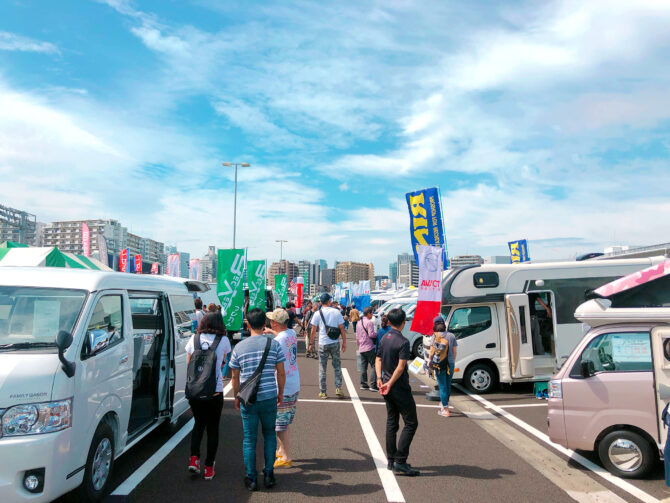 約150台のキャンピングカー・キャンピングトレーラーが集結し、さまざまなキャンピングカーを一度に見ることができる絶好の機会です。
