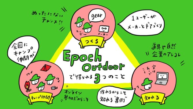 キャンプ好きであるユーザー同士がオンラインでつながり、国内メーカーと一緒にギア作りを行うオンラインコミュニティ「epoch outdoor(エポックアウトドア)」が、2020年6月10日(水)よりスタートする。
